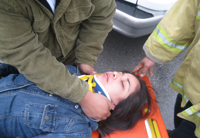 Técnicos en urgencias médicas de Coramedic, que arribaron a la escena del accidente del automóvil marca Pontiac Sunfire, modelo 1997, color negro, de dos puertas, contra la camioneta marca Dodge Caravan, modelo 1996, color blanco, rescataron del carro a la acompañante Melany Estefanía Pérez Badajos.