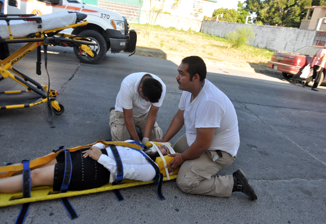 Llegando a la escena del percance, encontraron únicamente a Astrid lesionada, por lo que le dieron los primeros auxilios, y la subieron a una ambulancia, para hacerla llegar a urgencias del Hospital General.