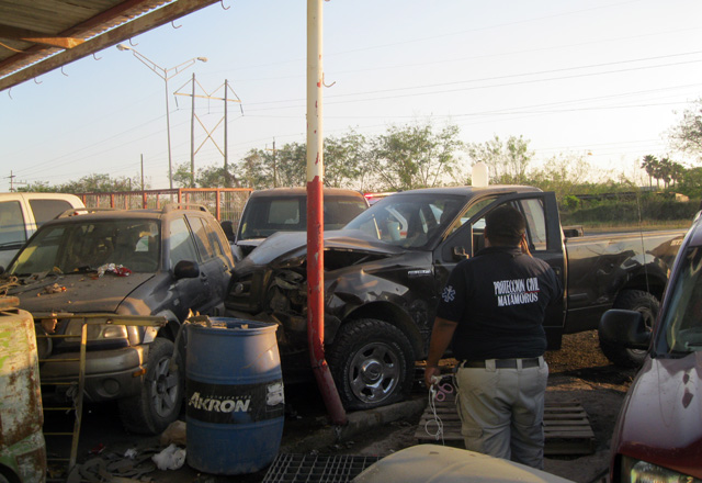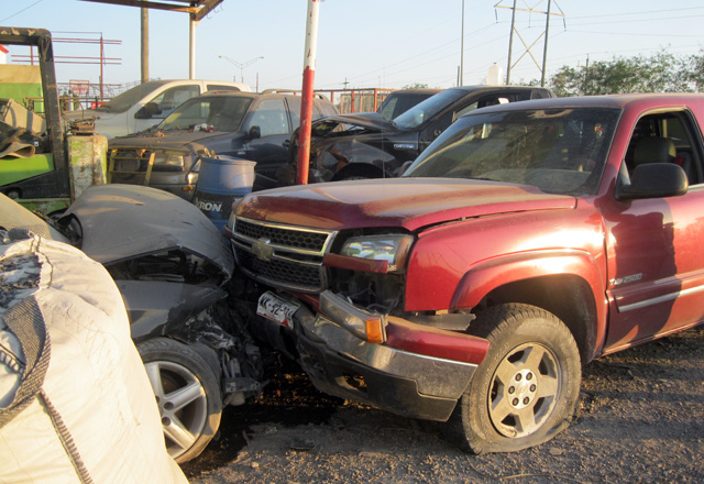 18/02/2016 - El conductor de una camioneta pick up salió mal herido en horas de la tarde al salirse de la carretera a Reynosa a la altura del kilómetro 4, e impactarse contra cinco vehículos y un remolque estacionados.