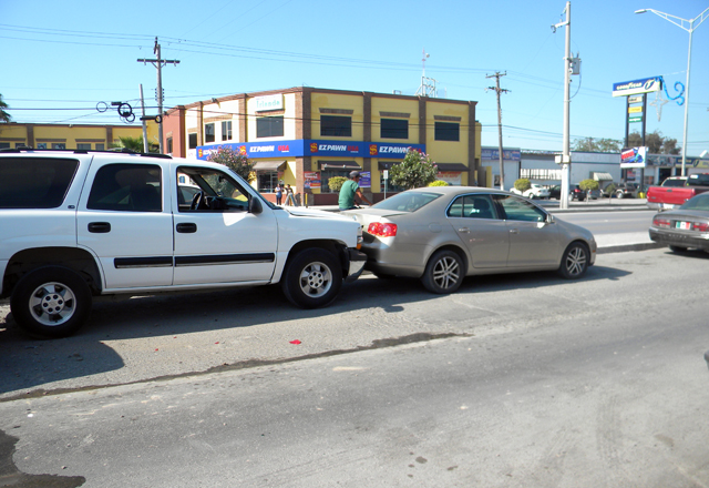 El mecánico de la Comisión Federal de Electricidad ocasionó daños materiales por varios miles de pesos a los tres vehículos estacionados, mismos que serán cubiertos por la compañía aseguradora de la camioneta pick up.