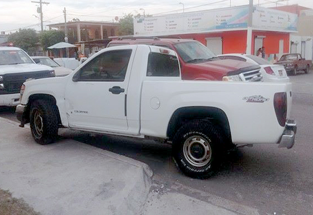 Sobre la avenida Agapito González Cavazos, en el carril contrario, de oriente a poniente, quedó la camioneta pick up, marca Chevrolet Colorado, color blanco del ofendido.