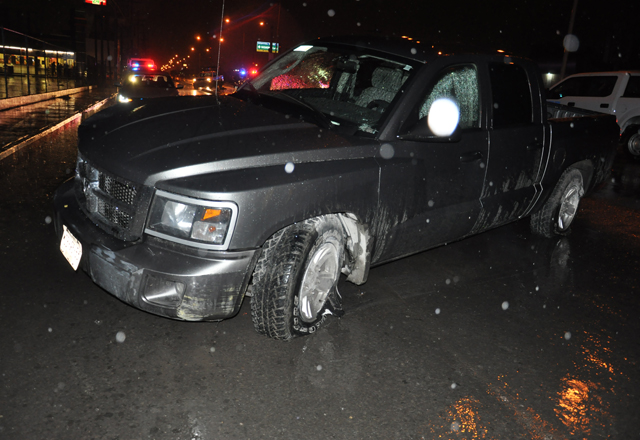 La camioneta tenía una llanta ponchada, pues tras arrollar a la dama, se fue directo contra el camellón central.