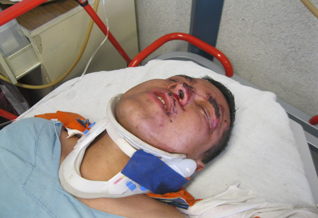 De inmediato le rescataron de la camioneta, para brindarle los primeros auxilios, subirlo a la ambulancia, y trasladarlo con múltiples lesiones en el tórax y en su cuerpo, a la sala de urgencias del Hospital General.