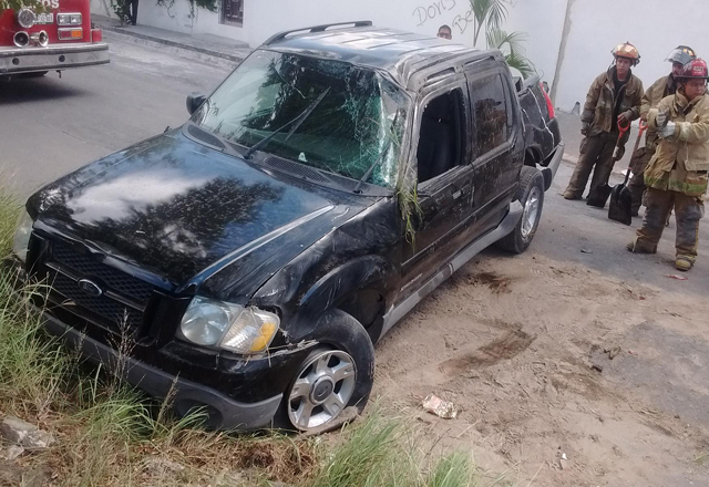 Al llegar encontraron abajo de la avenida Virgilio Garza Ruiz, sobre las calles Jacarandas y Roble, del fraccionamiento Paseo Residencial, atravesada y con indicios de haberse volcado, una camioneta pick up, marca Ford Explorer Sport Trac, color negro, de cuatro puertas y a un particular, que rescató y acompañaba a la lesionada y conductora, Brenda Araceli Flores Hernández.