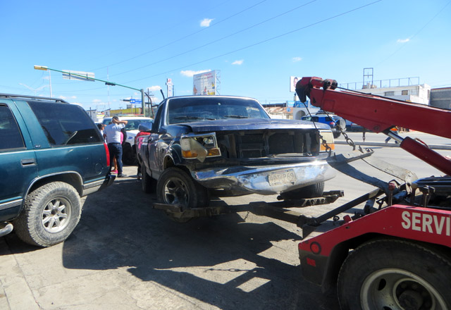 En la escena quedaron involucrados, un automóvil marca Jaguar, modelo 2003, color gris, de cuatro puertas, y una camioneta pick up marca Ford F-150, modelo 1994, color azul.