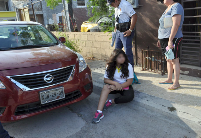 Valeria Rivera Eguía, de 12 años de edad, con domicilio en la calle Escorpión No. 107 del fraccionamiento Satélite, fue atendida por los paramédicos de Protección Civil, pues presentaba golpes en varias partes del cuerpo.