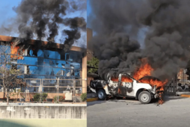 Bomberos comenzaron a mitigar las llamas del edificio, así como de los automóviles. Hasta el momento no se reportan personas lesionadas y tampoco hay detenidos.