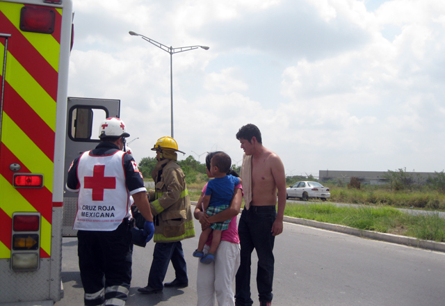 Al llegar los técnicos en urgencias médicas de Protección Civil, y de la Cruz Roja, les dieron los primeros auxilios al matrimonio y al inocente menor de edad, los cuales ya habían sido rescatados por unos particulares.