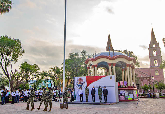 A muy temprana hora, el Alcalde arribó a la plaza principal “Miguel Hidalgo” para presidir los honores a la bandera, acompañado de autoridades educativas, civiles y militares.