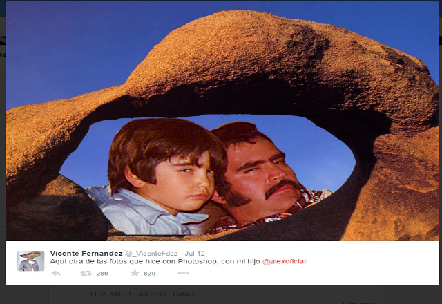 Acompañado del texto: "Aquí otra de las fotos que hice con Photoshop, con mi hijo @alexoficial", Vicente Fernández anunció al mundo, a través de Internet, que se está poniendo a la vanguardia tecnológica.