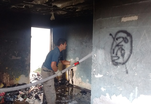 Manifestaron que fue en el interior, de lo que fue la sala comedor, y una de las recámaras, donde encontraron la lumbre consumiendo gran cantidad de basura, así como dos viejos colchones.