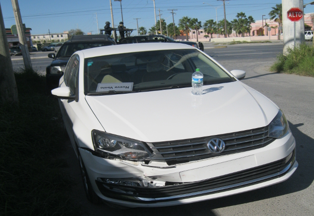A las 09:41 horas, patrulleros y peritos de la Policía Vial, se trasladaron a las avenidas Pedro Cárdenas Gutiérrez y del Trabajo, a tomar conocimiento del choque entre un automóvil Volkswagen Vento, de Arturo Guajardo, y un Chevolet Malibu, modelo 2004, color guinda, guiado por la ofendida, Mayra Elizabeth Paredes Luna, de 33 años de edad, que reside en calle San Miguel de Allende número 115, del fraccionamiento Infonavit Pueblitos.
