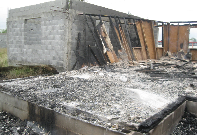 La casa quedó semi consumida por la lumbre, una de las paredes con barrotes, semi derribada, y gran cantidad de láminas galvanizadas esparcidas en varios puntos.