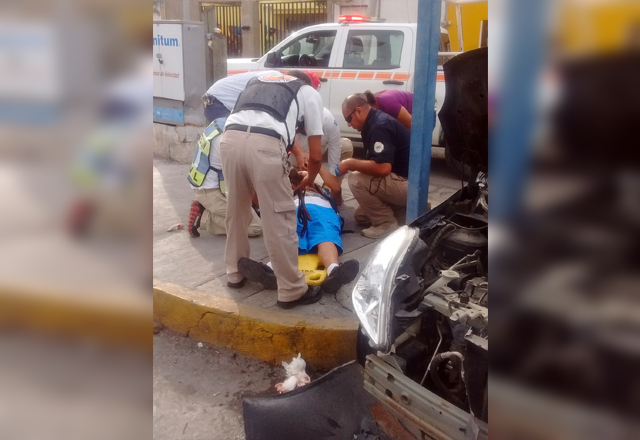 La presunta responsable fue trasladada a una clínica particular, y el tripulante del automóvil, al hospital del Instituto Mexicano del Seguro Social, de las calles Sexta entre Mina y Ocampo.