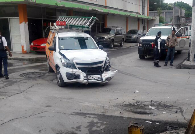 19/05/2016 - Debido a que no tuvo la suficiente precaución al manejar por las calles de la zona centro, ya que no hizo el alto correspondiente, un trabajador de una empresa de cable choca contra el auto de una dama, resultando ambos lesionados y ameritando de ser atendidos por socorristas.
