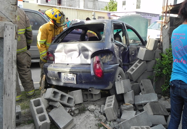 Ella en el carro iba de norte a sur, por la calle Golfo de México, y la choca la camioneta y la impacta con una barda de blocks.