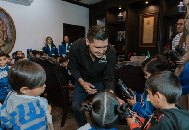 H. Matamoros.- El alcalde Alberto Granados Fávila recibió en su despacho a los pequeños del jardín de niños "Francisco Pérez Ríos", quienes expresaron su apoyo al edil, animándolo a continuar con su ardua labor para que Matamoros brille aún más.