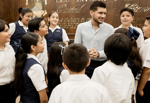 Recibe el alcalde Beto Granados a alumnos Lasallistas