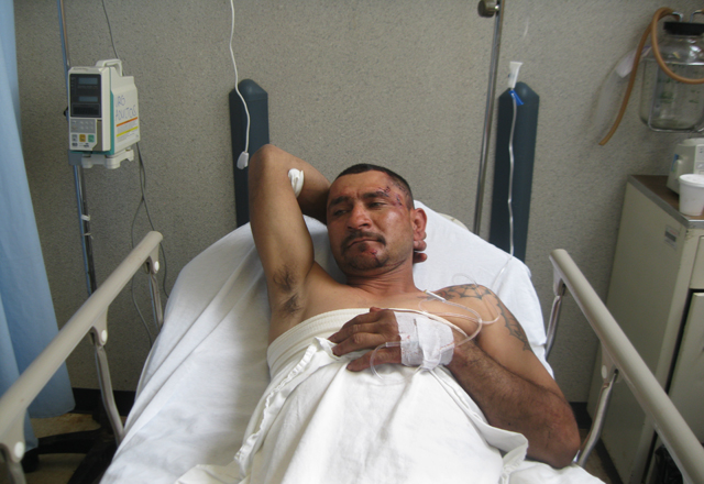 Fue a las 07:30 horas, cuando una ambulancia de la benemérita institución, entró a los patios de urgencias del hospital, con el herido a navajazos.