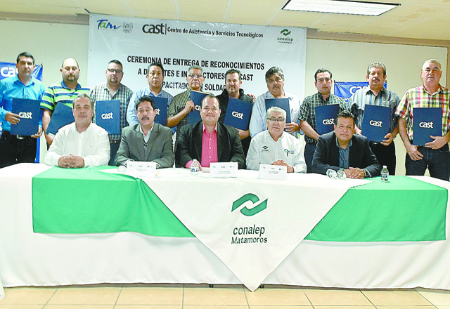 Posteriormente, el Ing. Conrado Yépez Aguilar, director del CAST, mencionó que es una gran satisfacción ver que ya se cuenta con alumnos con Certificados de Competencia, dispuestos a compartir lo aprendido para instruir a nuevas generaciones de Técnicos en Soldadura que se formarám como especialistas para los sectores del área metal mecánica y la soldadura y corte subacuático y de este modo atender la demanda del sector petrolero en las costas de Tamaulipas.