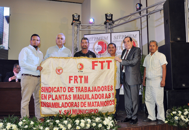 En la mesa de honor le acompañaron: Lic. José Ángel Morales, secretario de Trabajo de la Federación de Trabajadores de Tamaulipas, en representación del Lic. Joaquín Gamboa Pascoe, líder nacional de la Confederación de Trabajadores de México; la Lic. Vilma García Seguy, delegada de Sedesol de Matamoros, en representación del gobernador constitucional del estado de Tamaulipas, Ing. Egidio Torre Cantú; el Dr. Gerardo García Salinas, jefe de la III Jurisdicción Sanitaria en Matamoros, en representación de Antonio Martínez Torres, y Lic. Gabriel Mendoza Fierros, subsecretario general del SITPME.