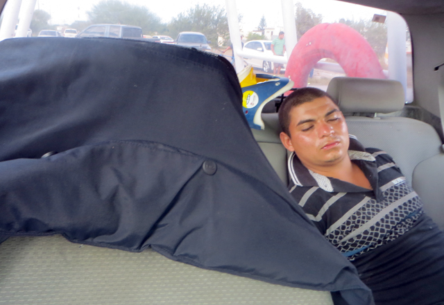 Blanca Guadalupe dijo, que en el carro KIA iba de norte a sur por la avenida 12 de Marzo, cuando el Jeep la impacta en la parte posterior, y la lanza al fondo del canal, perdiendo el control el ebrio, quien choca al Malibu de Héctor Osvaldo Apresa y quiere huir, siendo capturado por el ofendido.