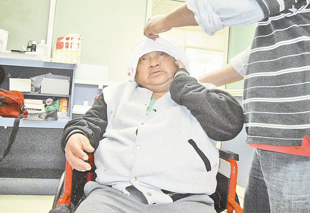 El personal médico de guardia procedió a auscultarlo y a darle los primeros auxilios, apreciándole una herida de varios centímetros en la parte posterior de la cabeza.