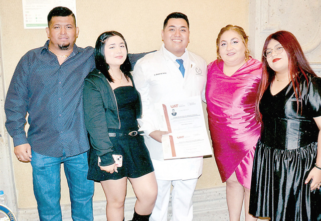 El flamante Médico Cirujano Brandon Max Herrera Morales formó parte de la Generación 2019-2024 que fue apadrinada por el doctor Víctor Hugo Valles Álvarez, en tan importante evento el nuevo profesionista de la medicina estuvo acompañado por su familia, sus abuelos Luis Herrera y Martha Rubio, así como por sus padres, Luis Jesús Herrera y Lucía Morales.