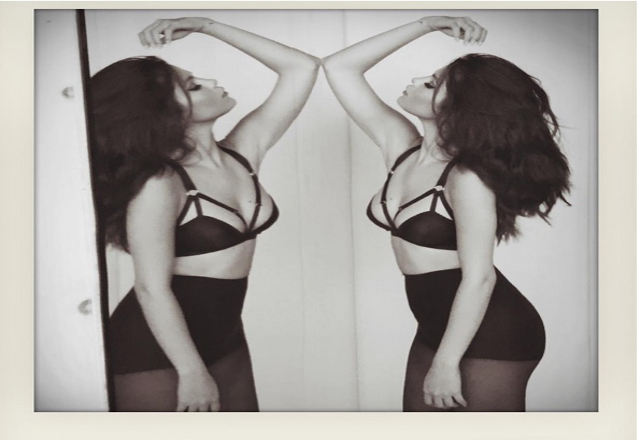 Usando un bra negro y un par de medias negras, la estrella de 23 años posa frente a un espejo y cierra sus ojos para contemplar la celebración del lanzamiento de su nuevo álbum ‘Revival’.