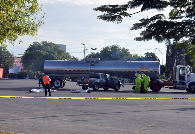 En este sitio, a las 8:00 de la mañana iniciaron los trabajos de este ejercicio binacional con la simulación de una colisión entre un vehículo y un carro-tanque, el cual con el impacto se representó la fuga de 7 mil 236 galones de amoniaco, sustancia química inflamable que empezó a liberarse en forma de gas y lo cual ocasionó cinco personas afectadas.