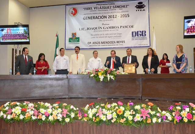 18/07/2015 - Con la presencia de distinguidas autoridades, el Colegio de Bachilleres de Tamaulipas Plantel 02 hizo entrega a la sociedad de su XXV Generación de jóvenes 2012-2015 en solemne ceremon