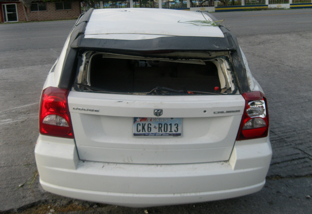 Encontraron sumamente dañado un vehículo marca Dodge Caliber, modelo 2007, con el lesionado, a quien trasladó una ambulancia al IMSS de las calles Sexta y Mina.
