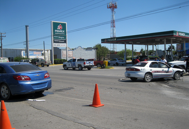 Un perito solicitó una grúa para que se llevara el carro taxi al corralón de las avenidas Marte R. Gómez y Pedro Cárdenas, quedando en garantía de la reparación de los daños ocasionados al otro auto.