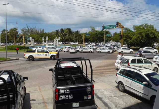 Pasados algunos minutos, los taxistas circularon en caravana sobre el bulevar Kukulcán, en dirección al Aeropuerto Internacional de Cancún, pues buscaban que las autoridades correspondientes intervinieran en sus peticiones.