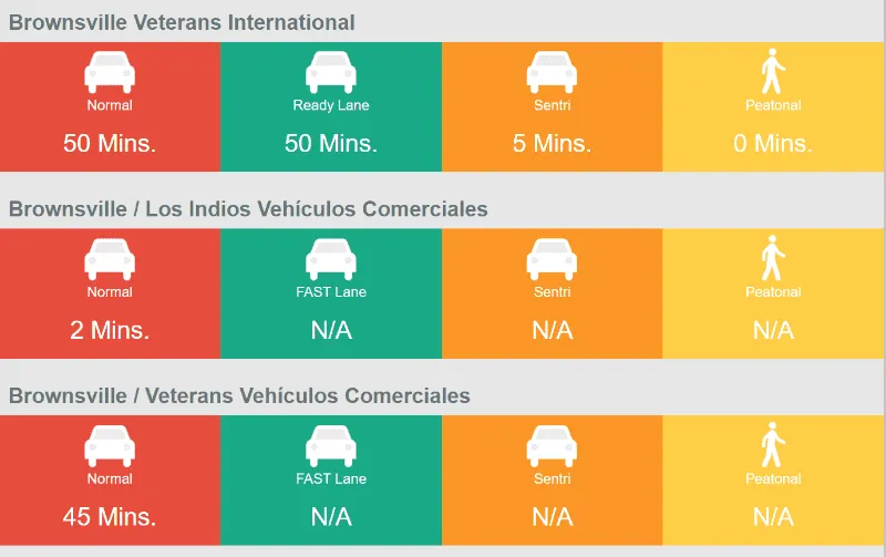A continuación te presentamos los tiempos de espera que los conductores encontrarán en los puentes de Matamoros este lunes 20 de febrero de 2023.