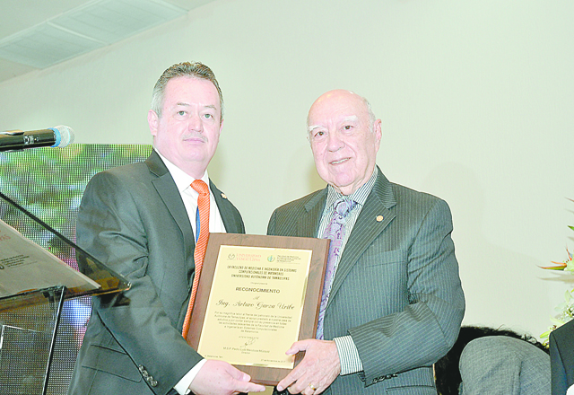 El Maestro en Salud Pública, Pedro Luis Mendoza Múzquiz, hizo entrega de reconocimientos a dos distinguidas personalidades, en primer término se le entregó al C.P. Enrique Carlos Etienne Pérez del Río, por su incansable dedicación al servicio de la UAT y la extraordinaria gestión como Rector de nuestra máxima casa de estudios y el apoyo incondicional que ha otorgado a la Facultad de Matamoros, de la misma manera se entregó al Ing. Arturo Garza Uribe, Presidente del Patronato de la UAT Matamoros, por su magnífica labor al frente del patronato, el apoyo prestado a nuestra casa de estudios y contar con su presencia en todas las actividades relevantes de la facultad.