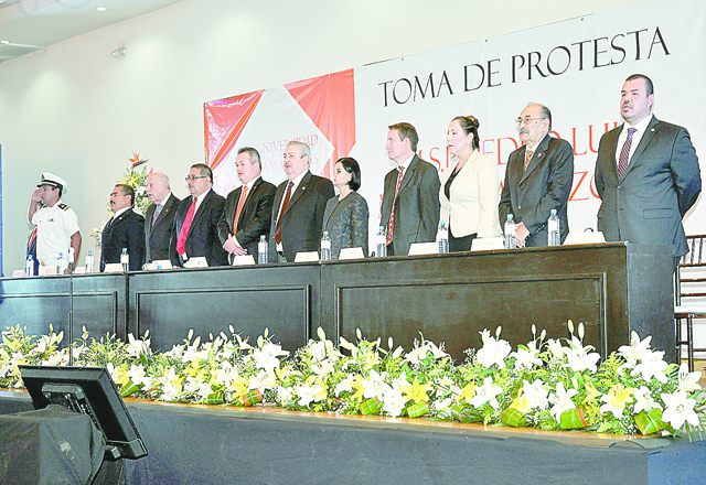 El programa se inició realizando los honores a nuestro Enseña Nacional a cargo de la escolta de bandera del 8avo. Regimiento de Caballería Motorizado de la Secretaría de la Defensa Nacional, la entonación del Himno Nacional Mexicano, así como la presentación del Escudo de Armas y el Himno a Tamaulipas, momentos después se presentó a la mesa de honor integrada por las siguientes distinguidas personalidades: Lic. Verónica Salazar Vázquez, representante del Gobernador del Estado, Lic. Francisco García Cabeza de Vaca; C.P. Enrique Carlos Etienne Pérez del Río, Rector de la UAT; Profr. Héctor Manuel Díaz Sánchez, Director de Educación Municipal, en representación del Lic. Jesús de la Garza Díaz del Guante, Presidente Municipal de Matamoros; Ing. Arturo Garza Uribe, Presidente del Patronato de la UAT Matamoros; Otto Van Maerssen, Cónsul General de los Estados Unidos en Matamoros; C.P. Guillermo Mendoza Cavazos, Secretario de Finanzas de la UAT; Teniente de Fragata, Servicio de Comunicaciones Navales, Benjamín Peña Llanos, en representación del Contraalmirante Federico Alberto Magaña Ramos, Comandante del Sector Naval de Matamoros; Dr. Rubén Montalvo Montelongo, Becario y Secretario Académico de la Facultad de Medicina e Ingeniería en Sistemas Computacionales de Matamoros; Dra. Marina Magdalena Ondarza Rodríguez, Coordinadora de Planeación de la Facultad de Medicina e Ingeniería en Sistemas Computacionales de Matamoros; Dr. Rodolfo Pérez Rivas, Coordinador de la carrera de Medicina, y M.S.P. Pedro Luis Mendoza Múzquiz, Director de la Facultad de Medicina e Ingeniería en Sistemas Computacionales de Matamoros. También se contó con la presencia de invitados especiales de honor, funcionarios de la UAT, directores, secretarios académicos y personal de las diferentes escuelas, facultades y unidades académicas de las diferentes sedes de la UAT, directores y maestros jubilados de la Facultad de Matamoros, miembros del Consejo Técnico local, personal docente, administrativo de confianza, funcionarios del sindicato del personal docente, directores de las diferentes instituciones de educación media y superior, presidente y ex presidentes del Colegio Médico de Médicos Generales, directores y funcionarios de los diferentes hospitales de nuestra ciudad, presidentes del Club Rotario Norte y Club Rotario Matamoros Industrial, familiares y amigos, quienes recibieron la más cordial bienvenida, para dejar el podium al Rector de la UAT, C.P. Enrique Carlos Etienne Pérez del Río, para expresar su mensaje y tomar protesta al M.S.P. Pedro Luis Mendoza Múzquiz, expresando que todos los tamaulipecos somos UAT, calificando su discurso como el último mensaje que como Rector le toque pronunciar, afirmando que se va contento al lograr lo que parecía sumamente difícil: Generar la unidad que existe actualmente en la universidad, demostrada al contar con la presencia solidaria de todos los demás directores desde Nuevo Laredo a Matamoros para mostrar su solidaridad al M.S.P. Pedro Luis Mendoza Múzquiz, a quien llamó al estrado para tomarle protesta como Director de la Facultad de Medicina e Ingeniería en Sistemas Computacionales de Matamoros, prometiendo cumplir la Constitución Política de los Estados Unidos Mexicanos, la Constitución del Estado de Tamaulipas, los Estatutos Orgánicos de la Universidad Autónoma de Tamaulipas así como de los acuerdos que de ella emanen y los acuerdos del Consejo Técnico, a lo que el M.S.P. Pedro Luis protestó cumplirlos.