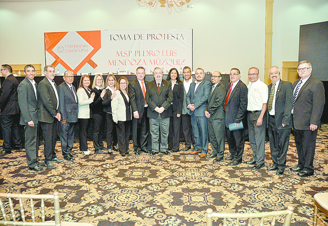 2/12/2017 - Reconocidas personalidades de los sectores Salud, Educativo y Federal se dieron cita en el salón Imperial del Hotel Residencia Inn & Suites para acompañar al M.S.P. Pedro Luis Mendoza Múzquiz a la toma de protesta como Director de la Facultad de Medicina e Ingeniería en Sistemas Computacionales de Matamoros para el periodo 2018-2021.