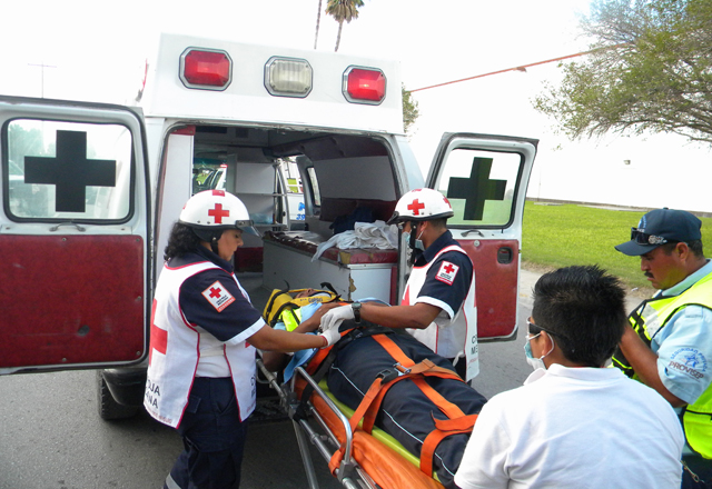 Técnicos en urgencias médicas de Protección Civil le brindaron los primeros auxilios, y sus colegas de la Cruz Roja lo trasladaron en una ambulancia al Hospital del Instituto Mexicano del Seguro Social, de las calles Sexta entre Mina y Ocampo.
