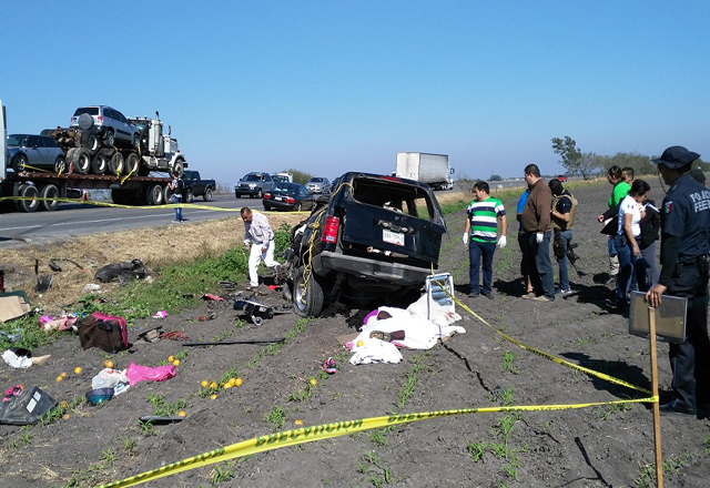 También falleció, Moisés Elías Rivas, de 51 años de edad, director de la escuela Secundaria "Fidel Trejo Flores", y su presunta esposa la maestra Olga Lidia Hernández Bocardo, de 47 años de edad, radicados en boulevard Joaquín Hernández Galicia, número 210, de ciudad Reynosa, recibe atención médica en el Hospital General, quienes viajaban en una camioneta Ford, Edge, 2010, color beige, placas de circulación XJH-94-07 del estado de Tamaulipas. El conductor del tráiler no está identificado ya que se dio a la fuga después del choque múltiple, en tanto el estado de salud de Olga Lidia es incierto, aunque los médicos que la atienden confían en poder salvarle la vida.
