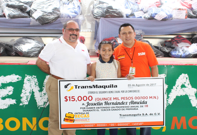 18/08/17.- A partir de las 3:30 p.m. del sábado 5 de agosto iniciaron su arribo los empleados de la empresa Transmaquila, acompañados de sus familias, ya que esa era la fecha acordada por la compañía para hacerles entrega por séptimo año consecutivo de mochilas y útiles escolares de niveles preescolar hasta universidad acorde al plan curricular de la Secretaría de Educación Pública, en vísperas del inicio del ciclo escolar 2017-2018 siendo este el primer año de la entrega del Premio por la Excelencia Académica, además de las becas correspondientes a los bimestres 4to. y 5to. del ciclo escolar 2016-2017.