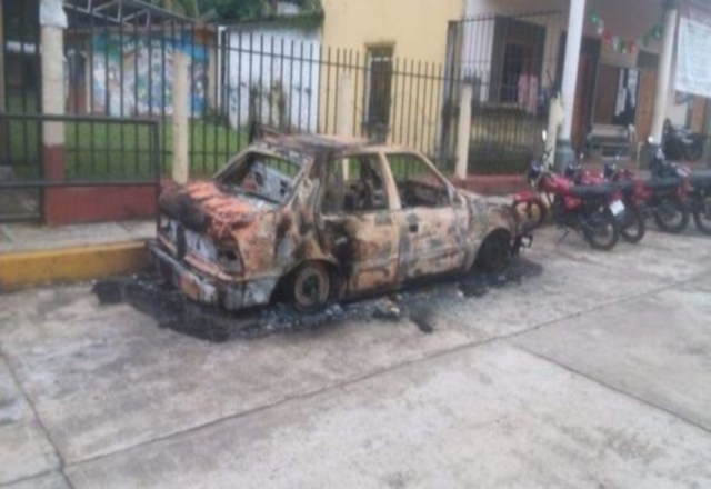 El alcalde fue resguardado por elementos de la policía municipal, pero esto enfureció más a los manifestantes, quienes incendiaron un vehículo oficial.
