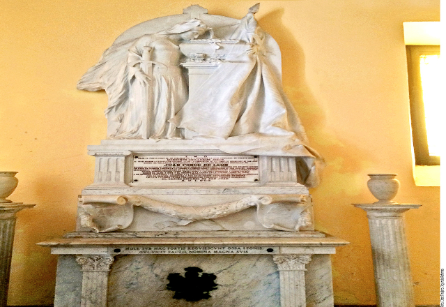 Su tumba de mármol se encuentra a unos metros del altar mayor. Es famosa porque muestra a la Reina Isabel la Católica besando el ataúd. De acuerdo con algunos guías de turistas, este detalle habla de un posible amorío entre el conquistador y la soberana.