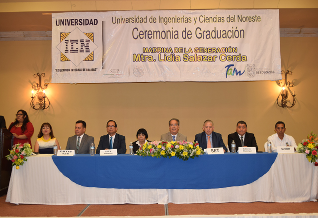 21/07/2018 - Importante ceremonia de graduación efectuó la Universidad de Ingenierías y Ciencias del Noreste, en la cual se entregó constancias a los egresados de los niveles Preparatoria, Licenciatura, Ingeniería y Maestrías, para tal efecto se contó con la asistencia de importantes personalidades municipales, educativas y los altos mandos de la Universidad ICN, que dieron aún más realce a tan significativa ceremonia, siendo ellos: Profr. y Lic. Juan Guerrero Sauceda, Director de Educación Municipal, en representación del Presidente Municipal, Lic. Jesús de la Garza Díaz del Guante; Lic. Alejandro Fernández Sandoval, Director del Área Internacional de la UTM, representando al Dr. Héctor Escobar Salazar, Secretario de Educación del Estado de Tamaulipas; C. Tirzo Cortez, Secretario de Educación del SJOIIM, representante del C. Juan Villafuerte, Secretario General del SJOIIM; Lic. Carlos Enrique Amaro, Rector de la Universidad ICN; Mtra. Lidia Salazar Cerda, Madrina de la Generación; Lic. Samuel Alcántar Varela, Director del CBTIS 135; Lic. Imelda Rocha Salazar, Directora de la Universidad ICN campus Valle Hermoso, y Mtro. José Luis Lucio Botello, Director de la Universidad ICN campus Matamoros.