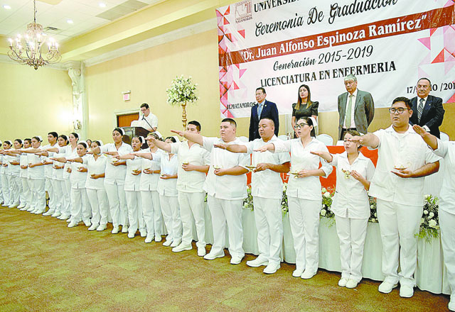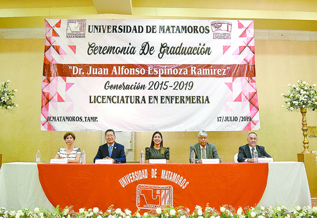 El pasado miércoles 17 de julio se realizó la ceremonia de graduación de la Universidad de Matamoros en el salón Cantera del Hotel Holiday Inn, donde se hizo entrega de las cartas de pasante a los alumnos egresados de la Séptima Generación 2015-2019 que con gran orgullo llevó el nombre del Dr. Juan Alfonso Espinoza Ramírez, Director de la Facultad de Enfermería y Padrino de generación.