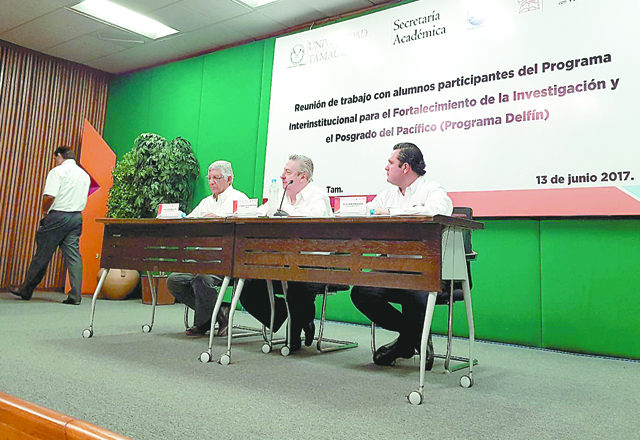 19/07/2017 - Alumnos de la carrera de Médico Cirujano de la Facultad de Medicina e Ingeniería en Sistemas Computacionales de Matamoros (FMeISCdeM) de la Universidad Autónoma de Tamaulipas (UAT) formaron parte el pasado mes de junio de la Reunión de trabajo con alumnos participantes del Programa Interinstitucional para el Fortalecimiento de la Investigación y Posgrado del Pacífico (Programa Delfín 2017).