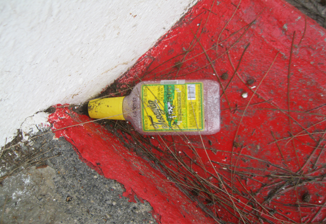 En una palma quedó un pantalón de mezclilla, presuntamente del ahora occiso y botellas de plástico vacías del alcohol, de las marcas El Mezcalito y Tonayan.