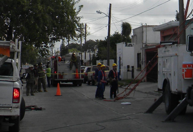 Pasaban de las 08:00 horas cuando elementos del Heroico Cuerpo de Bomberos, al mando del comandante Carlo Gerardo Martínez Guerra, y apoyados por técnicos en urgencias médicas de Protección Civil, acudieron a las calles Sexta y Camilo Manzo ante el reporte de la caída de una antena con cables de alta tensión.