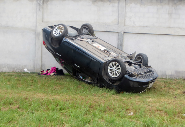 Presuntamente el automóvil se desplazaba a exceso de velocidad, de poniente a oriente, cuando el conductor no identificado, perdió el control del volante, y se salió a su derecha, para dar varias volteretas, quedando finalmente el vehículo a corta distancia de la pared de block de una propiedad, volcado con las cuatro llantas hacia arriba.